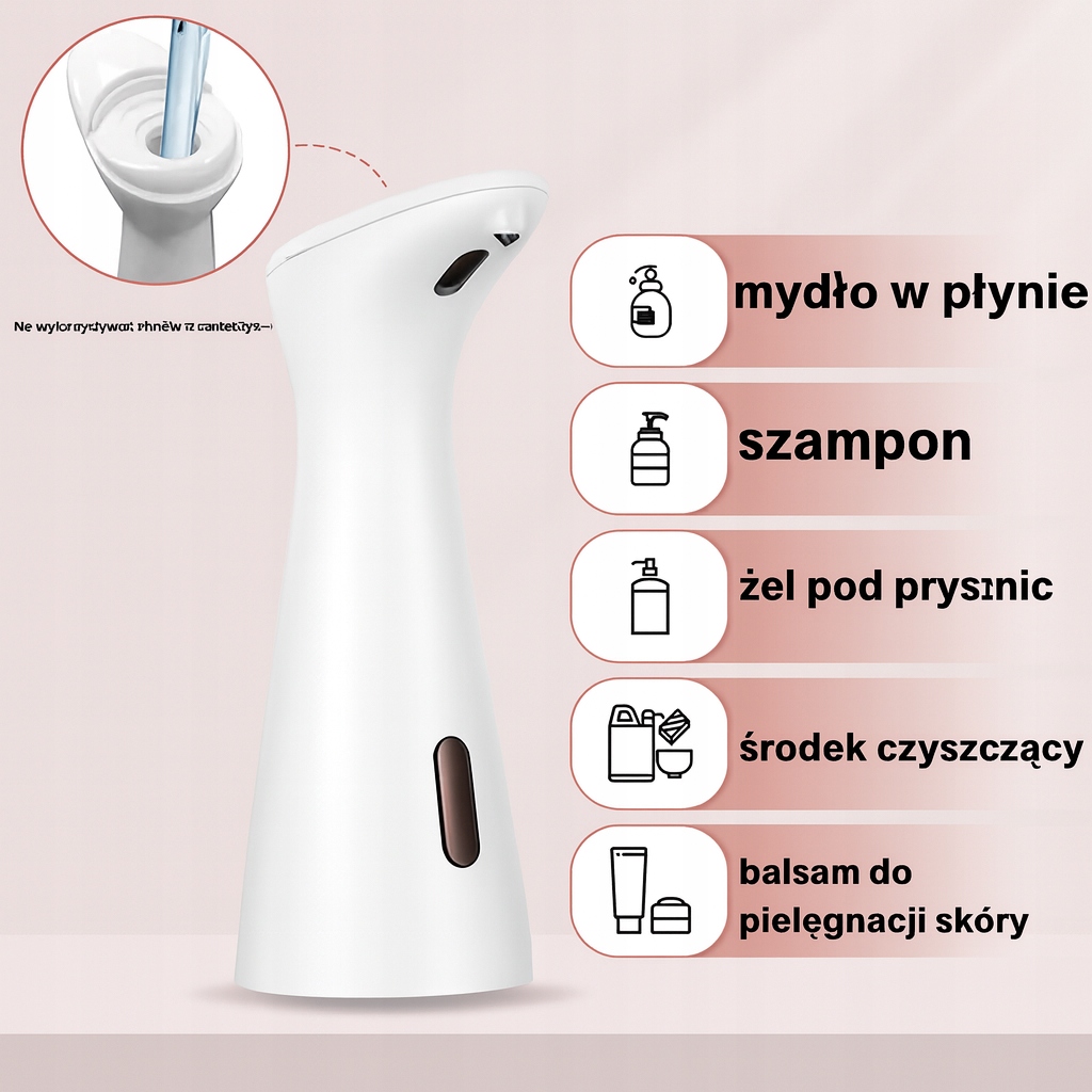 - Higiena bez dotykania – całkowicie bezpieczne i bezkontaktowe dozowanie mydła.