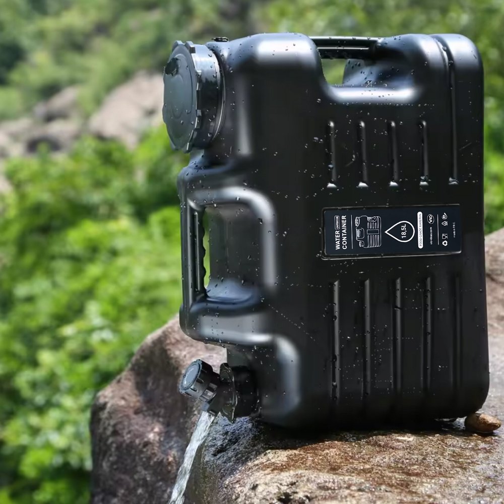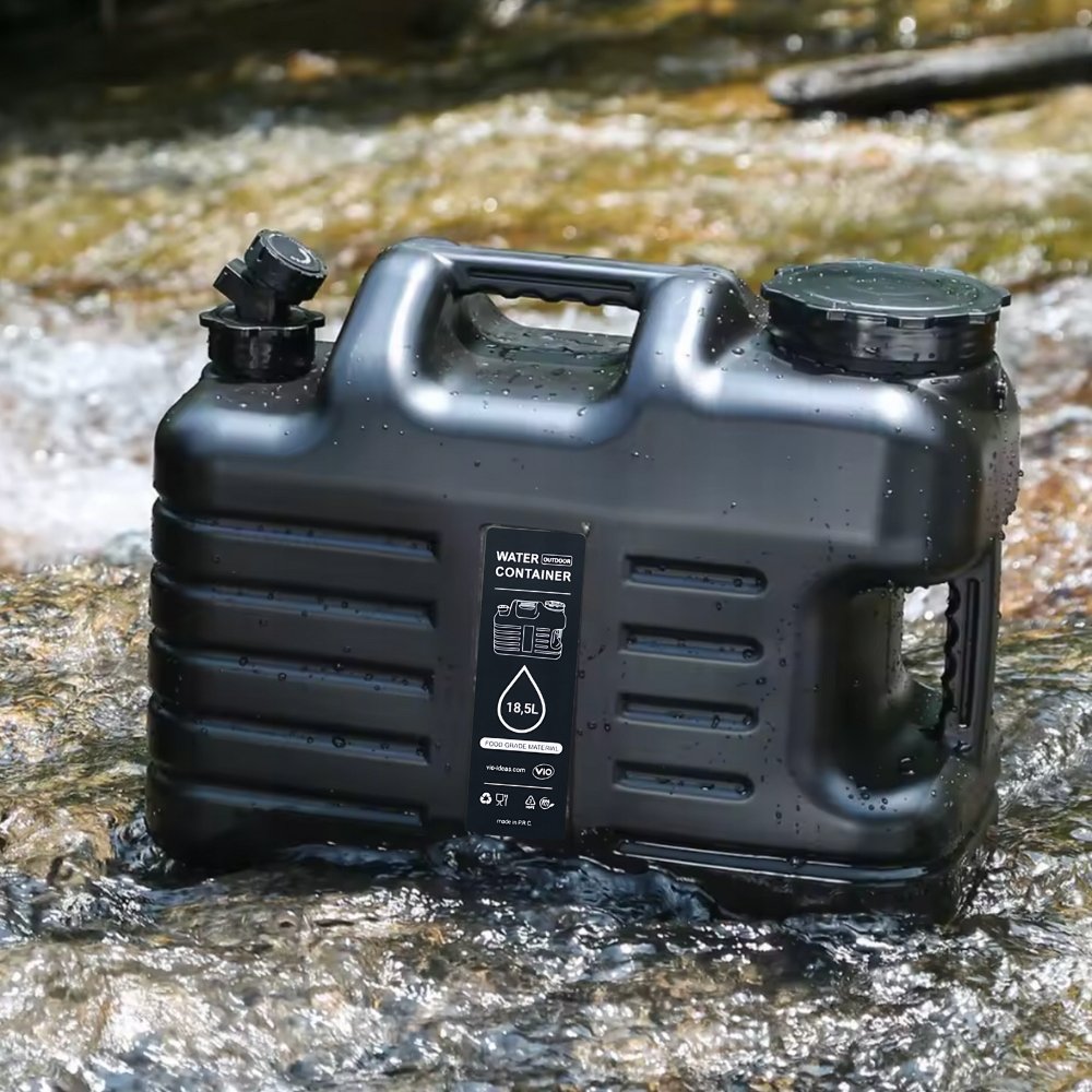 Czarny kanister ViO PET-TG 18,5 l wykonany jest z wysokiej jakości plastiku HDPE, który jest bezpieczny dla żywności, nie zawiera BPA i nie wpływa na smak ani zapach wody. Waży zaledwie 840 g, co czyni go lekkim i poręcznym, a jego kompaktowe wymiary pozwalają zabrać go wszędzie. Uszczelnienie z O-ringiem chroni wodę przed kurzem i bakteriami, a podwójny uchwyt sprawia, że przenoszenie nawet pełnego zbiornika jest wyjątkowo wygodne.