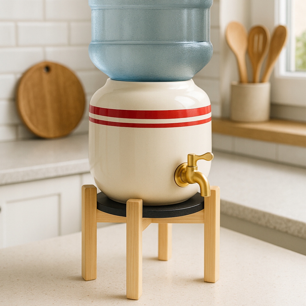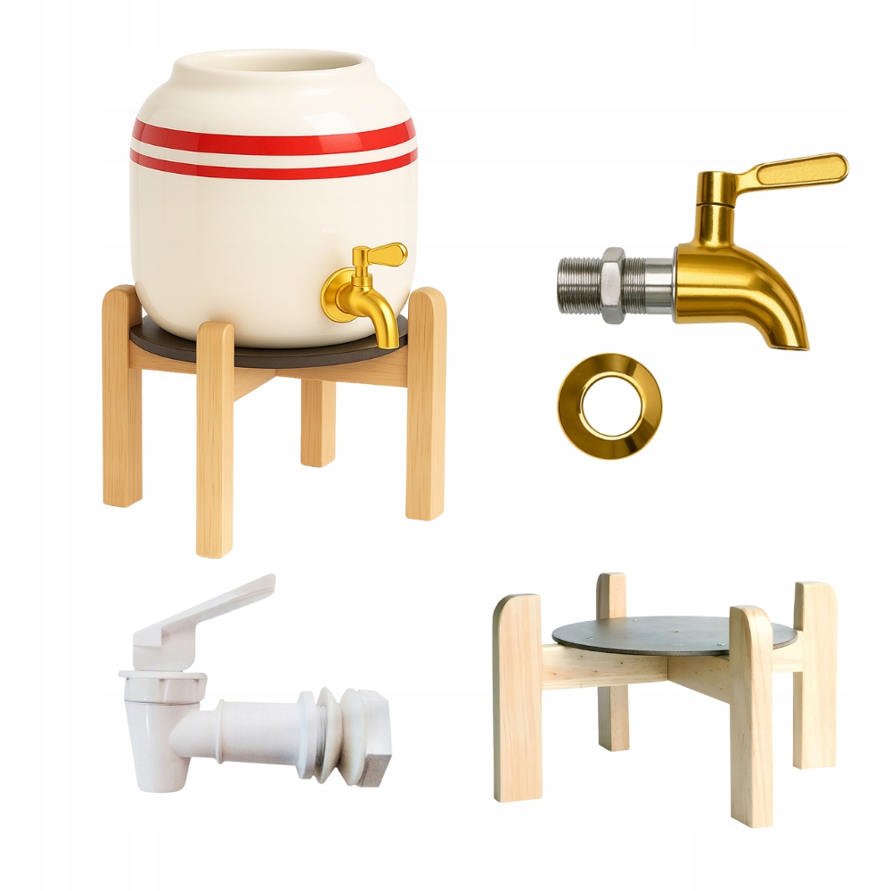 Ceramiczny pojemnik utrzymuje wodę świeżą i neutralną w smaku, podstawka gwarantuje stabilność, a kraniki zapewniają komfort codziennego użytkowania. Zestaw tworzy harmonijną całość, idealnie prezentującą się w każdym wnętrzu.
