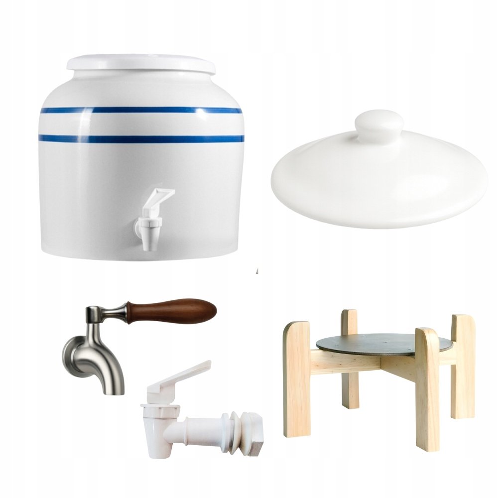 Elegancki Zestaw VIP 2 Silver CD-02 Niebieski to komplet, który łączy naturalną ceramikę, stabilne drewno oraz dwa wygodne kraniki — biały ViO A8 i srebrny metalowy ViO SF-2 — tworząc perfekcyjne rozwiązanie do serwowania wody w domu, biurze, salonie czy recepcji. W zestawie znajduje się również ceramiczna pokrywka LD-1 oraz solidna podstawka ViO WSD-6, dzięki czemu cały komplet jest gotowy do użytku od razu po rozpakowaniu.