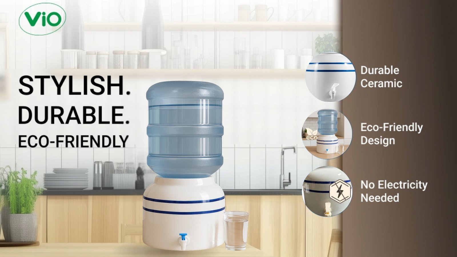 Ceramiczny Dystrybutor Wody ViO CD-02 – Niebieski Pasek Zestaw Basic