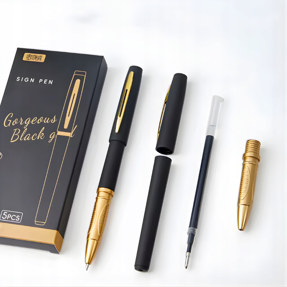 Zestaw 5 żelowych długopisów Sheaffer TSG-342 Gorgeous Black to połączenie eleganckiego designu, niezawodności i płynności pisania na najwyższym poziomie, idealne do biura, nauki i podpisywania ważnych dokumentów. Dzięki nasyconemu czarnemu tuszowi i precyzyjnej końcówce 0.5 mm, długopisy zapewniają wyjątkowo czystą, gładką i wyraźną linię bez smug i zacięć. Ergonomiczny korpus z matowym wykończeniem oraz złote akcenty nadają zestawowi prestiżowy wygląd, czyniąc go doskonałym narzędziem do codziennego użytku.