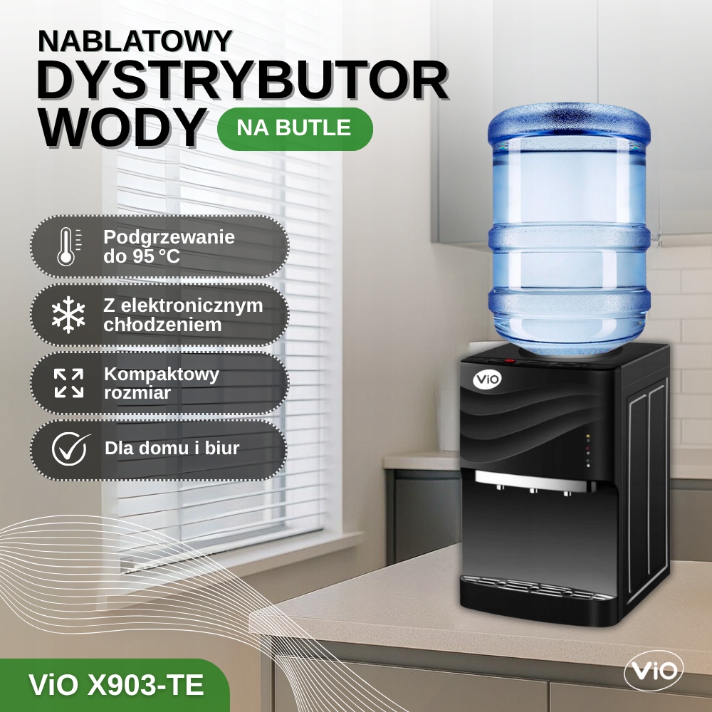 Dystrybutor wody ViO X903-TE Black to urządzenie niezbędne we współczesnym życiu. Zapewnia wygodny dostęp do wody pitnej o wymaganej temperaturze i znajduje zastosowanie w biurach, klinikach, salonach kosmetycznych, placówkach edukacyjnych, a nawet w domu.