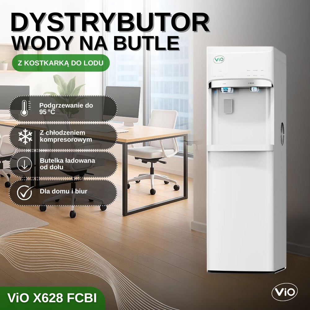 ViO X628 FCBI White to nowoczesna chłodziarka do wody, która łączy wygodę dolnego załadunku butli, skuteczne chłodzenie kompresorowe oraz funkcję generatora lodu. Dzięki temu urządzenie nie tylko zapewnia gorącą i zimną wodę, ale także umożliwia produkcję do 10 kg lodu dziennie, co sprawia, że jest idealnym rozwiązaniem do domu, biura, kawiarni, restauracji lub innych pomieszczeń komercyjnych.