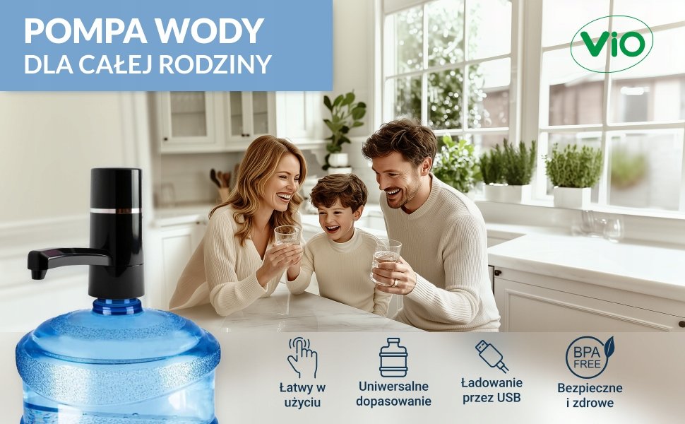 Pompka wyposażona jest w akumulator ładowany za pomocą dołączonego kabla USB. Gdy poziom naładowania jest niski, specjalny wskaźnik na obudowie informuje o konieczności podłączenia urządzenia do ładowania. ViO E4 Black to trwałe, wydajne i higieniczne rozwiązanie, które umożliwia korzystanie z wody butelkowanej w sposób wygodny i bez wysiłku.