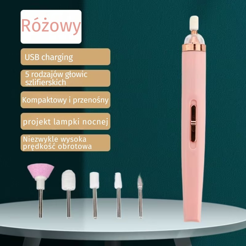 Akumulatorowa Frezarka Elektryczna TSG-31 do Paznokci z 5 Bitami (Różowa)