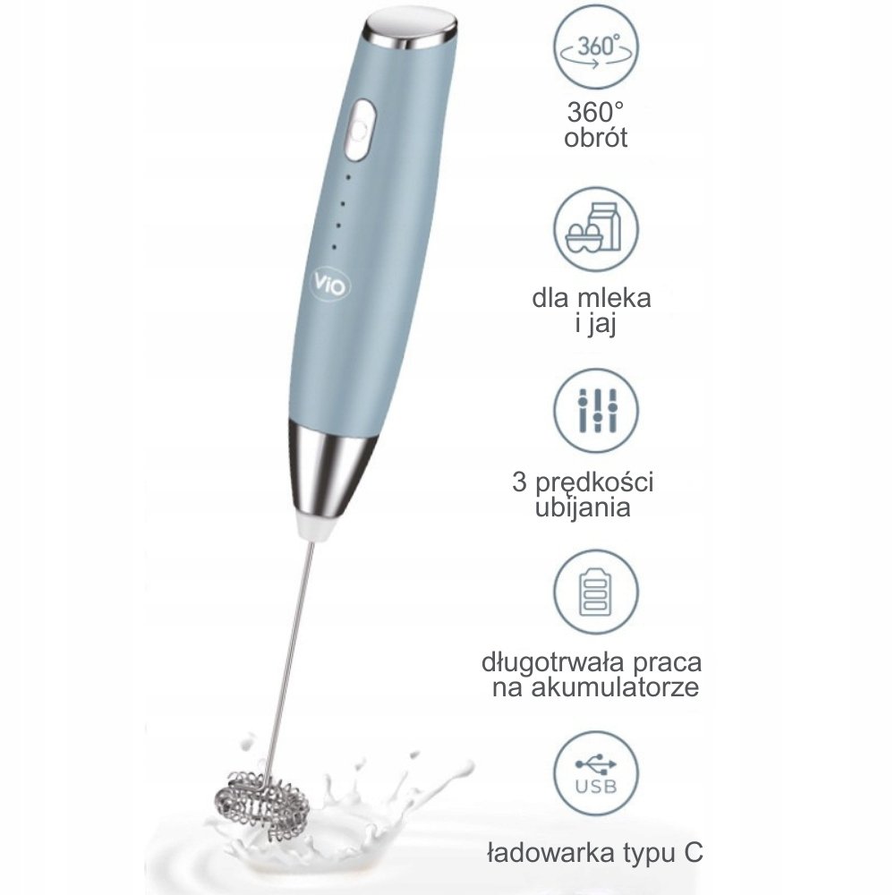 Elektryczny Spieniacz Do Mleka ViO K05 – Różdżka Do Ręczny Mocny Niebieski – Obrót o 360°