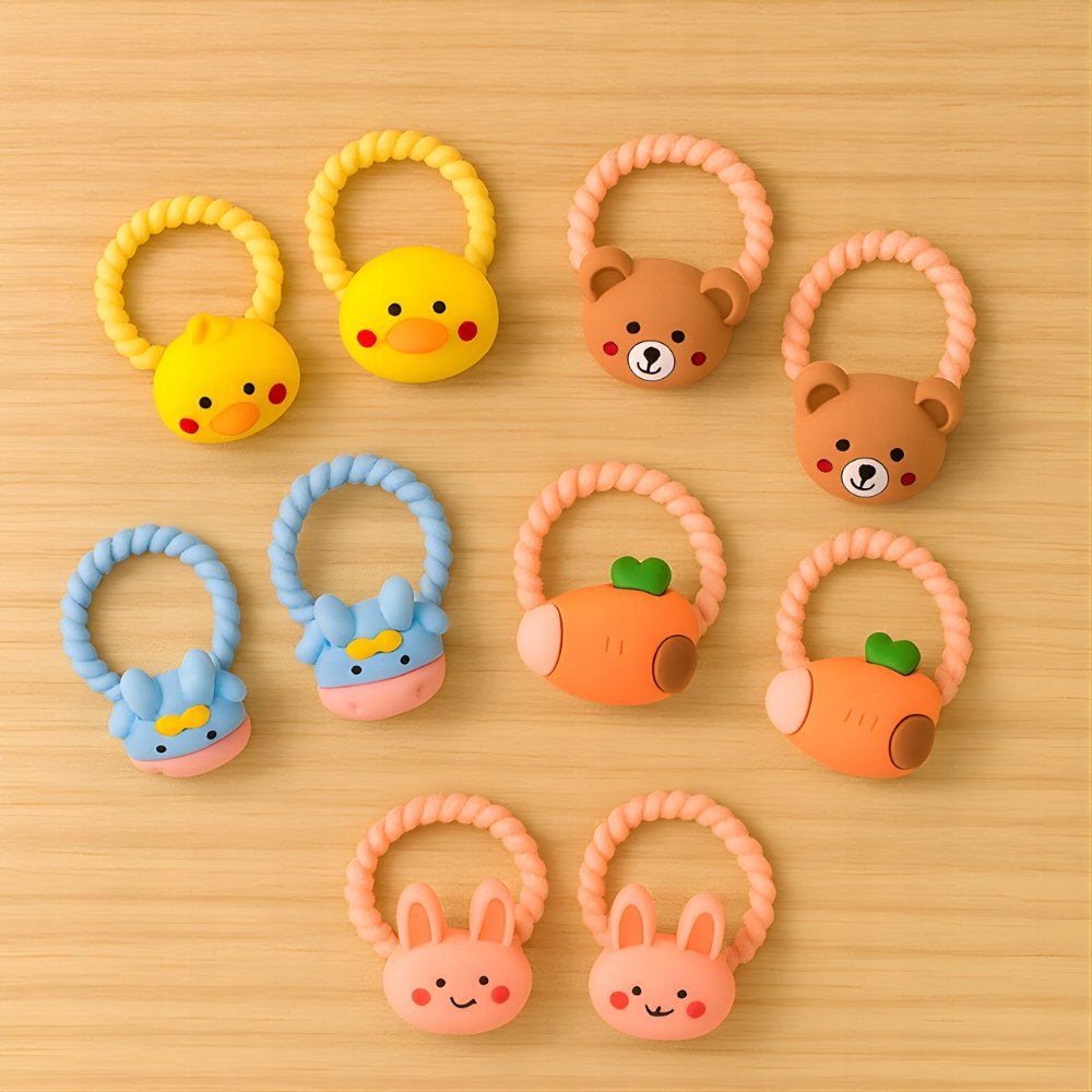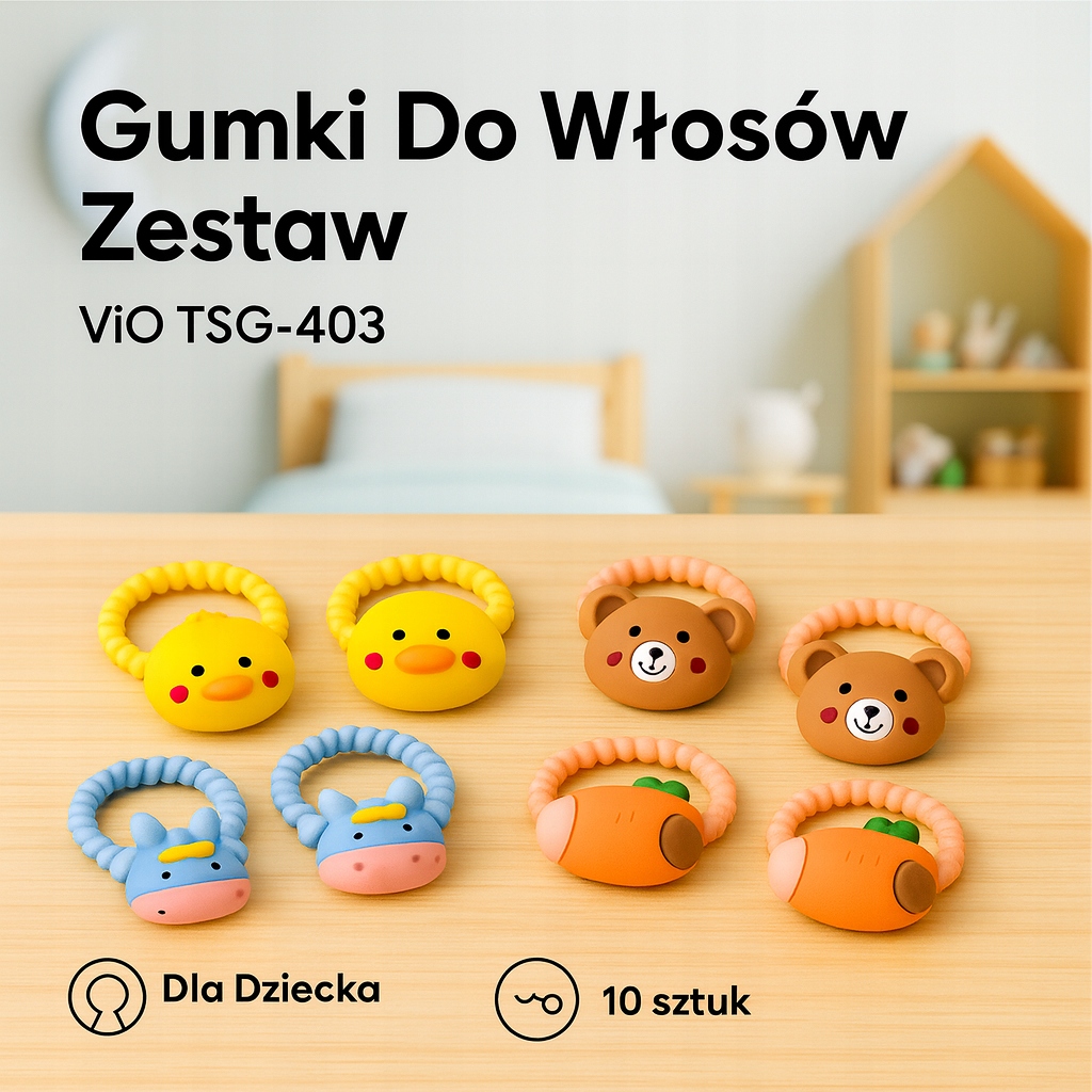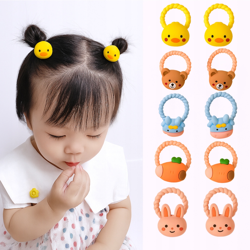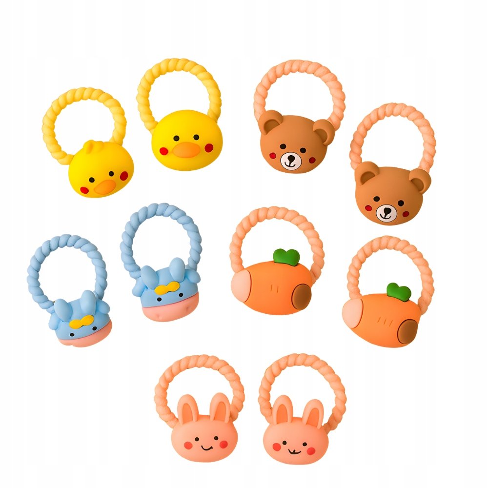 Zestaw gumek do włosów TSG-403 to uroczy i praktyczny komplet zaprojektowany specjalnie dla dziewczynek w każdym wieku. Każda gumka ma kolorową ozdobę w kształcie zwierzątek i owoców – m.in. kaczuszki, króliczki, misie, marchewki czy krówki. Dzięki temu każda fryzura nabiera radosnego charakteru i wyjątkowego uroku.