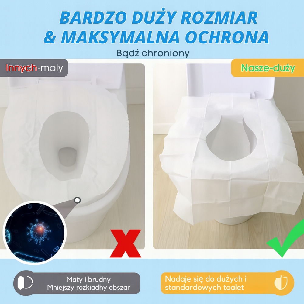 • Uniwersalny rozmiar – pasują do standardowych desek sedesowych.