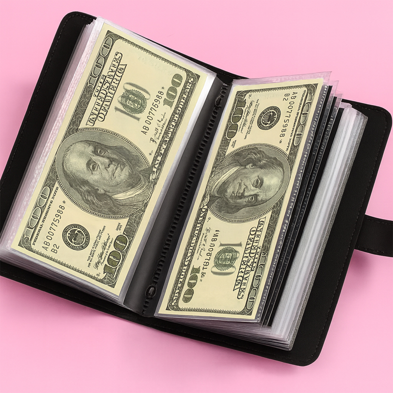 Wyposażony w przezroczyste kieszonki z PVC, pozwala łatwo przeglądać zawartość, chroniąc jednocześnie banknoty przed wilgocią, kurzem i zagięciami.