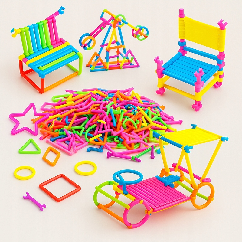 To doskonałe połączenie zabawy z nauką, które wspiera rozwój wyobraźni przestrzennej oraz poznawanie kolorów i kształtów.