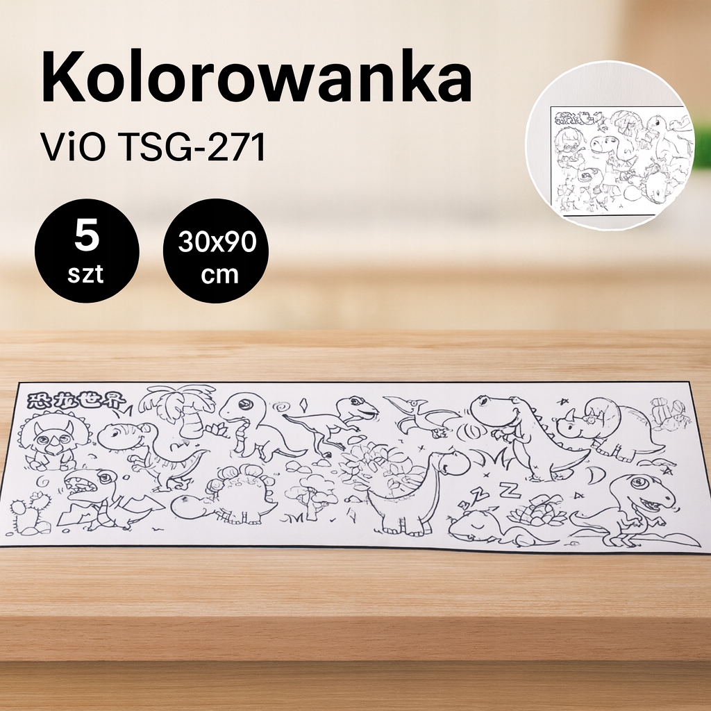 Kolorowanka w Rolce TSG-271 – Dinozaurki dla Dzieci, Zestaw 5 Sztuk (30×90 cm)