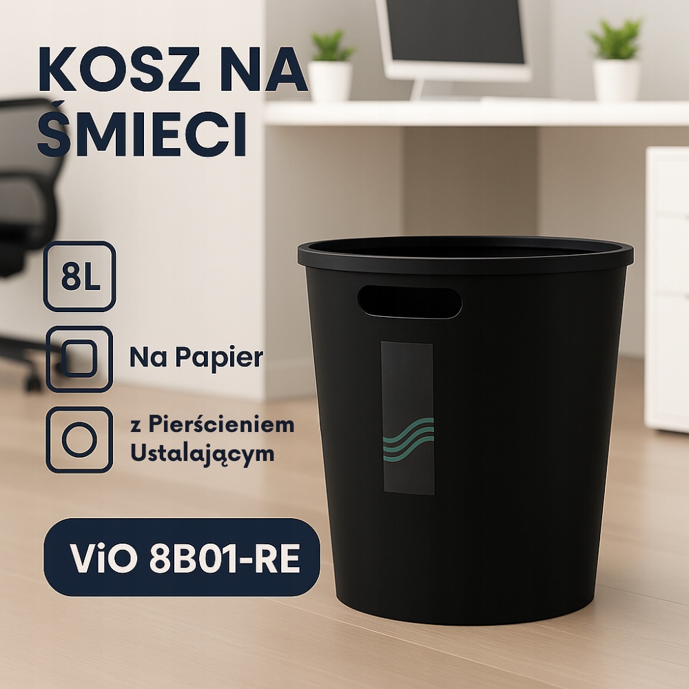 Kosz Na Śmieci Na Papier ViO 8B01-RE 8L Śmietnik z Pierścieniem Ustalającym – Czarny