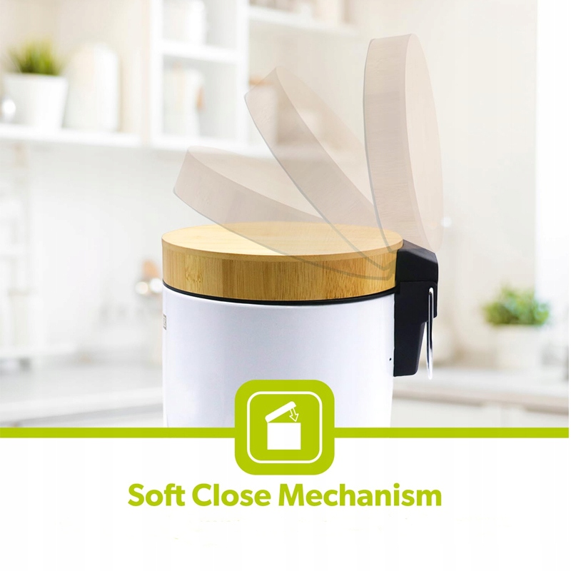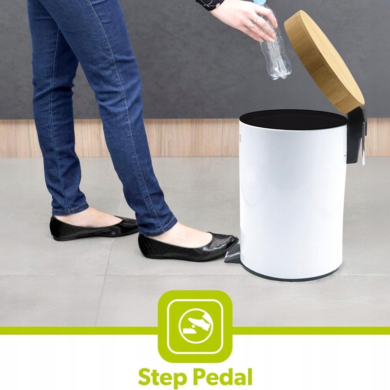 Kosz na Śmieci ViO 5B9-ROM Biały do Kuchni z Pedałem Bambusową Pokrywką 5L