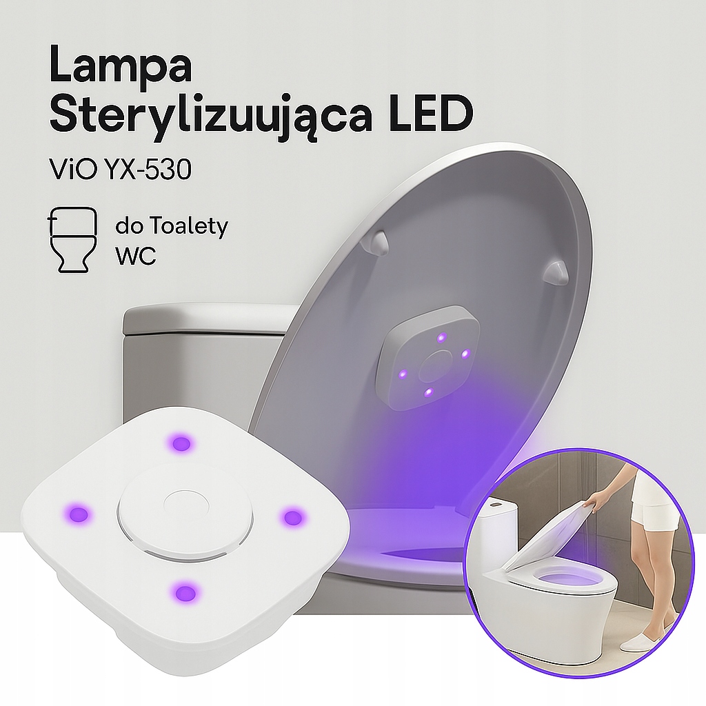 Lampa sterylizująca do toalety YX-530 to nowoczesne i bezpieczne rozwiązanie, które pomaga utrzymać najwyższy poziom higieny w łazience. Urządzenie wykorzystuje promieniowanie UV-C oraz ozonowanie, aby skutecznie eliminować bakterie, wirusy i nieprzyjemne zapachy. Wystarczy zamknąć pokrywę toalety – sterylizator uruchamia się automatycznie, zapewniając czystość i świeżość bez użycia chemikaliów.