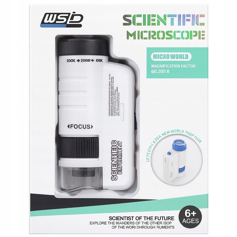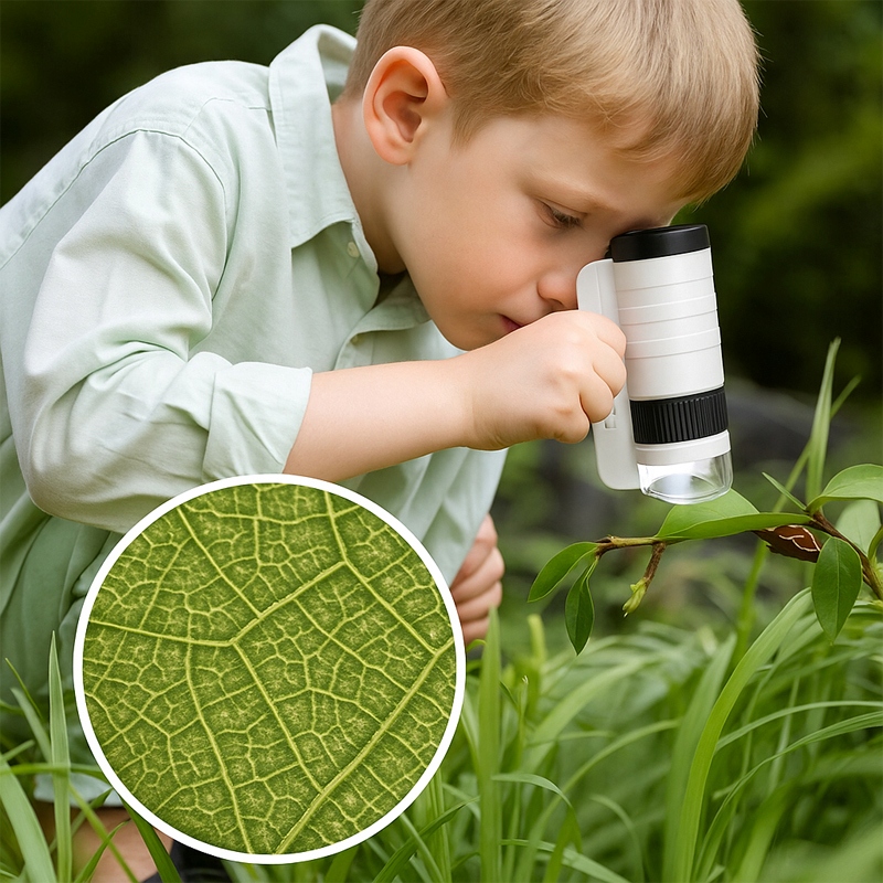 Dzięki wbudowanemu podświetleniu LED obraz jest zawsze wyraźny i pełen szczegółów, nawet przy słabym oświetleniu. Mikroskop zapewnia powiększenie od 60x do 200x, co pozwala zobaczyć mikroskopijny świat z zupełnie nowej perspektywy — od komórek roślin po najmniejsze struktury tkanek i mikroorganizmów.