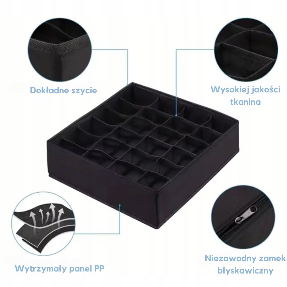 Organizer na bieliznę i skarpety w kolorze czarnym to praktyczne i estetyczne rozwiązanie, które pozwoli utrzymać idealny porządek w szafie lub komodzie. Dzięki kompaktowym wymiarom i przemyślanej konstrukcji, codzienne przechowywanie staje się wygodne, a znalezienie potrzebnej rzeczy zajmuje tylko chwilę.