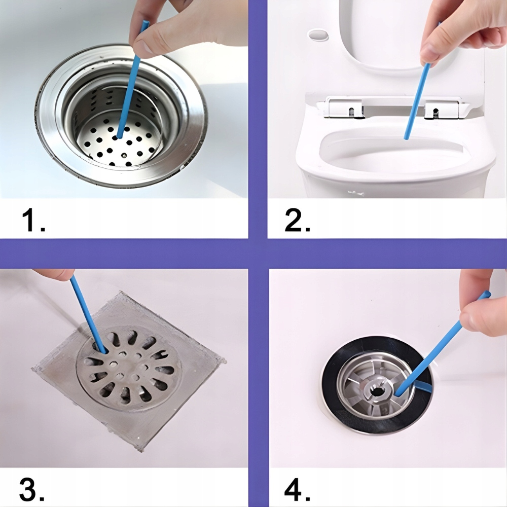 - Pozostaw – patyczek stopniowo się rozpuszcza, uwalniając enzymy, które rozkładają zanieczyszczenia i odświeżają wnętrze rur.