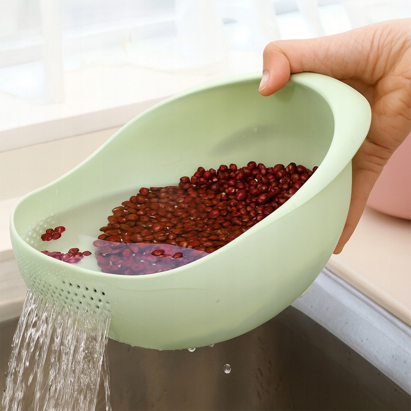 Koszyk drenażowy kuchenny w zielonym kolorze to praktyczne i wygodne akcesorium, które sprawdzi się podczas codziennego gotowania. Dzięki otworom do odprowadzania wody doskonale nadaje się do płukania, mycia i odcedzania ryżu, kaszy, owoców, warzyw czy makaronu. Trwałe tworzywo sztuczne bezpieczne dla żywności zapewnia komfort i bezpieczeństwo w użytkowaniu.