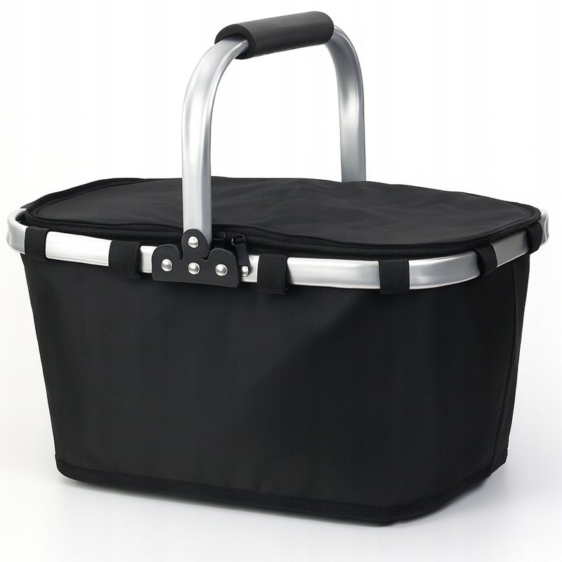 Składany Koszyk Termiczny TSG-248 Piknikowy Na Zakupy Plażę Uchwyt Czarny
