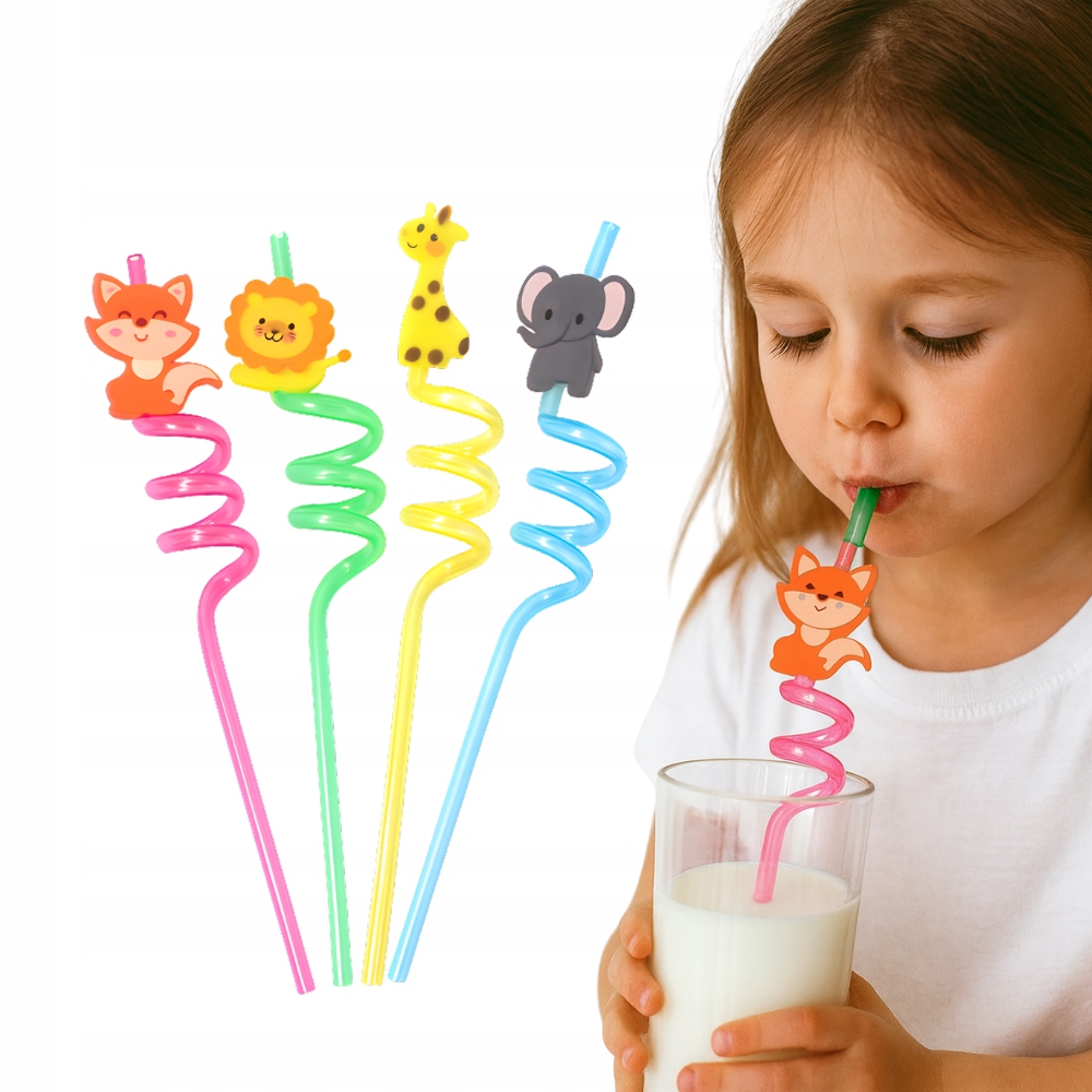 Słomki Plastikowe TSG-517 Dla Dzieci Skręcane Ze Zwierzętami (4 Szt.)