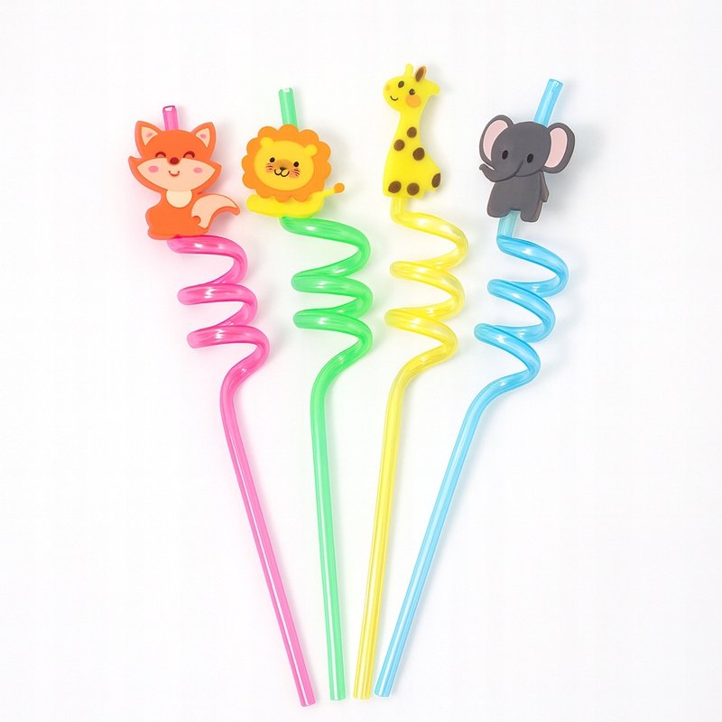 Słomki dla Dzieci Plastikowe Skręcane Zwierzęta TSG-517 Kolorowe Urodziny