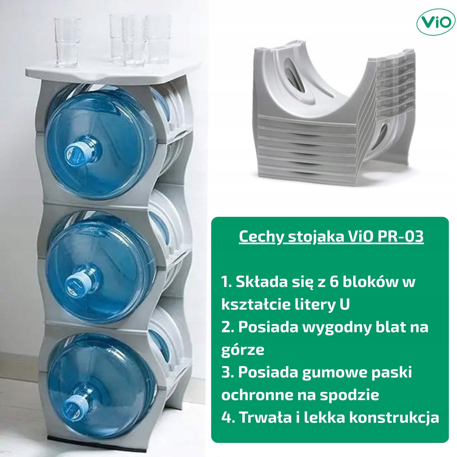 ViO PR-03: Plastikowy stojak na 3 butelki wody z blatem – idealne rozwiązanie do domu i biura