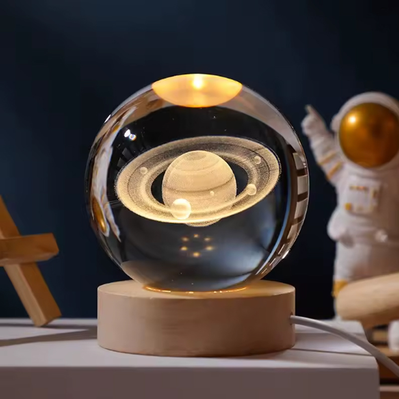 Szklana Kula Lampka Nocna Na Biurko TSG-452 LED Dekoracyjna 3D Saturn