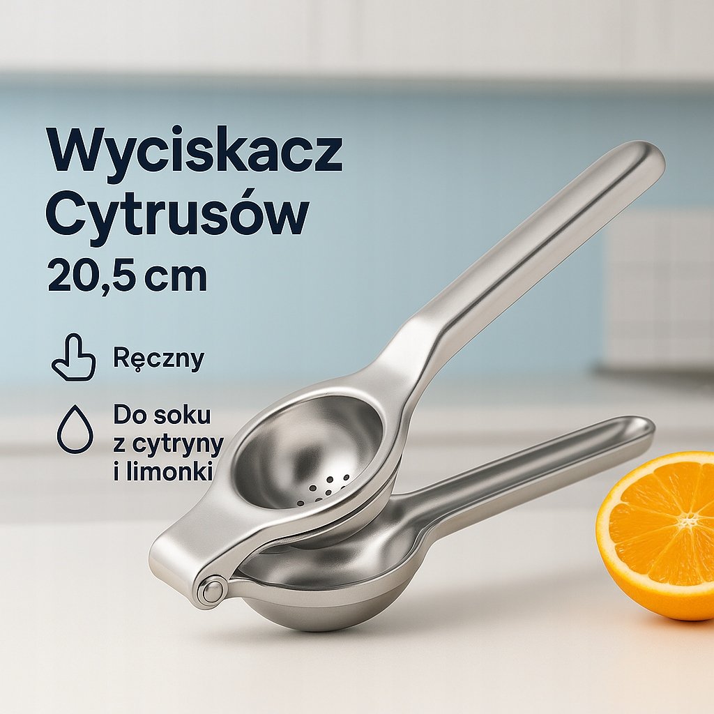 Ręczna wyciskarka do cytrusów ze stali nierdzewnej 205 mm to niezawodny i praktyczny gadżet kuchenny, który pozwala szybko uzyskać świeży sok z cytryny, limonki, pomarańczy czy mandarynki. Dzięki solidnej konstrukcji i wysokiej jakości materiałom sprawdzi się zarówno w domu, jak i w barze czy restauracji.