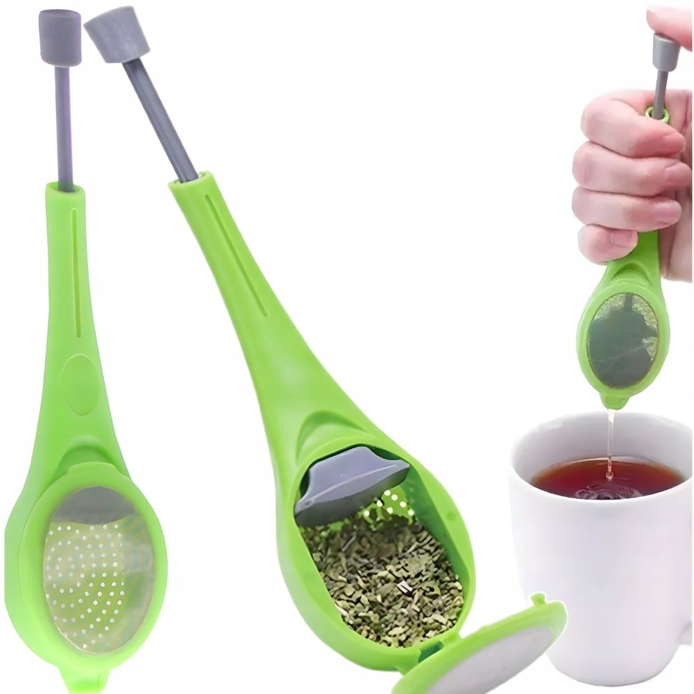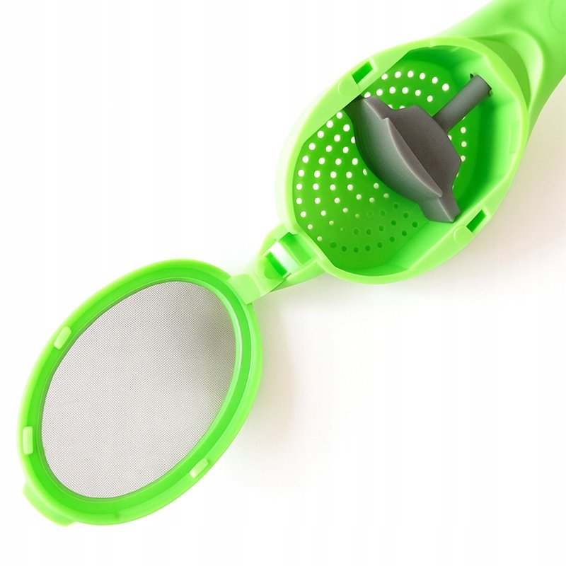Zaparzacz do herbaty i ziół TSG-637 z wyciskaczem – silikonowe sitko w kolorze zielonym