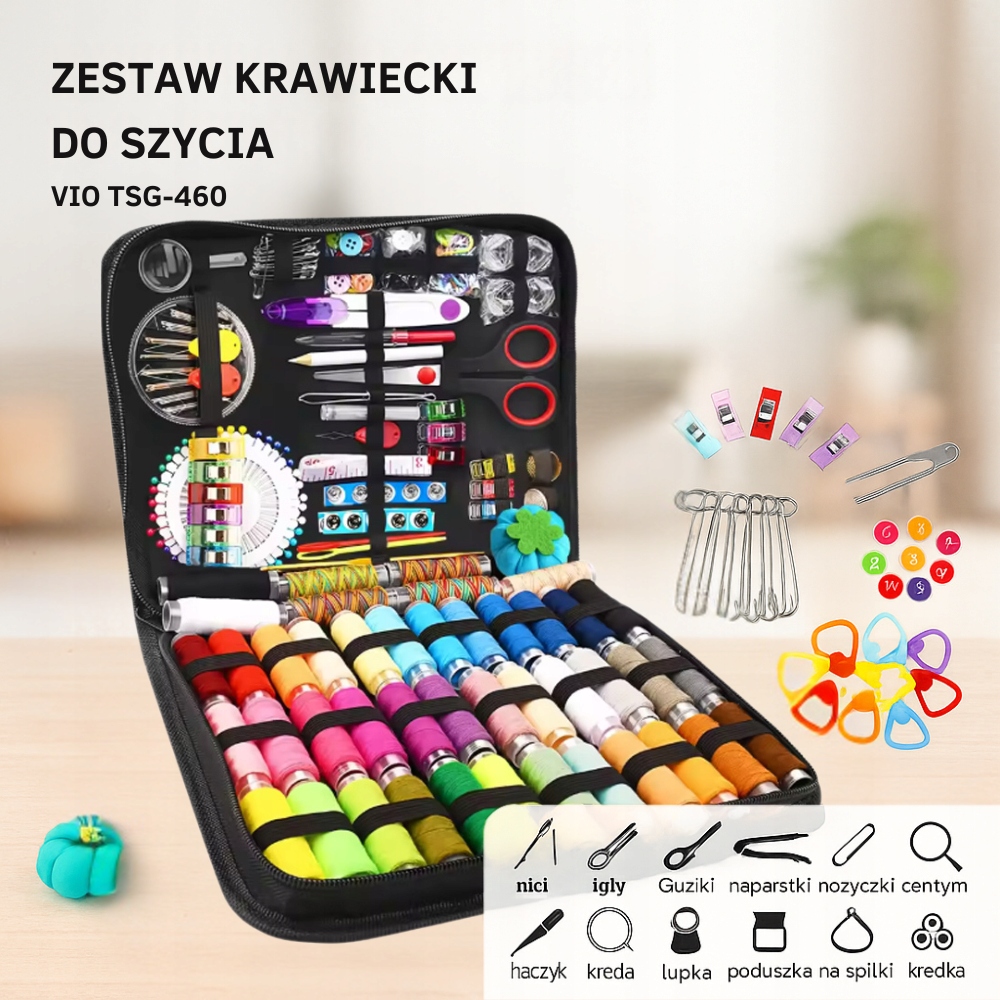 Zestaw TSG-460 to praktyczny i uniwersalny komplet do szycia, który sprawdzi się w każdej sytuacji — od drobnych napraw po tworzenie własnych projektów krawieckich. To idealny sposób, by mieć wszystkie niezbędne akcesoria zawsze pod ręką.